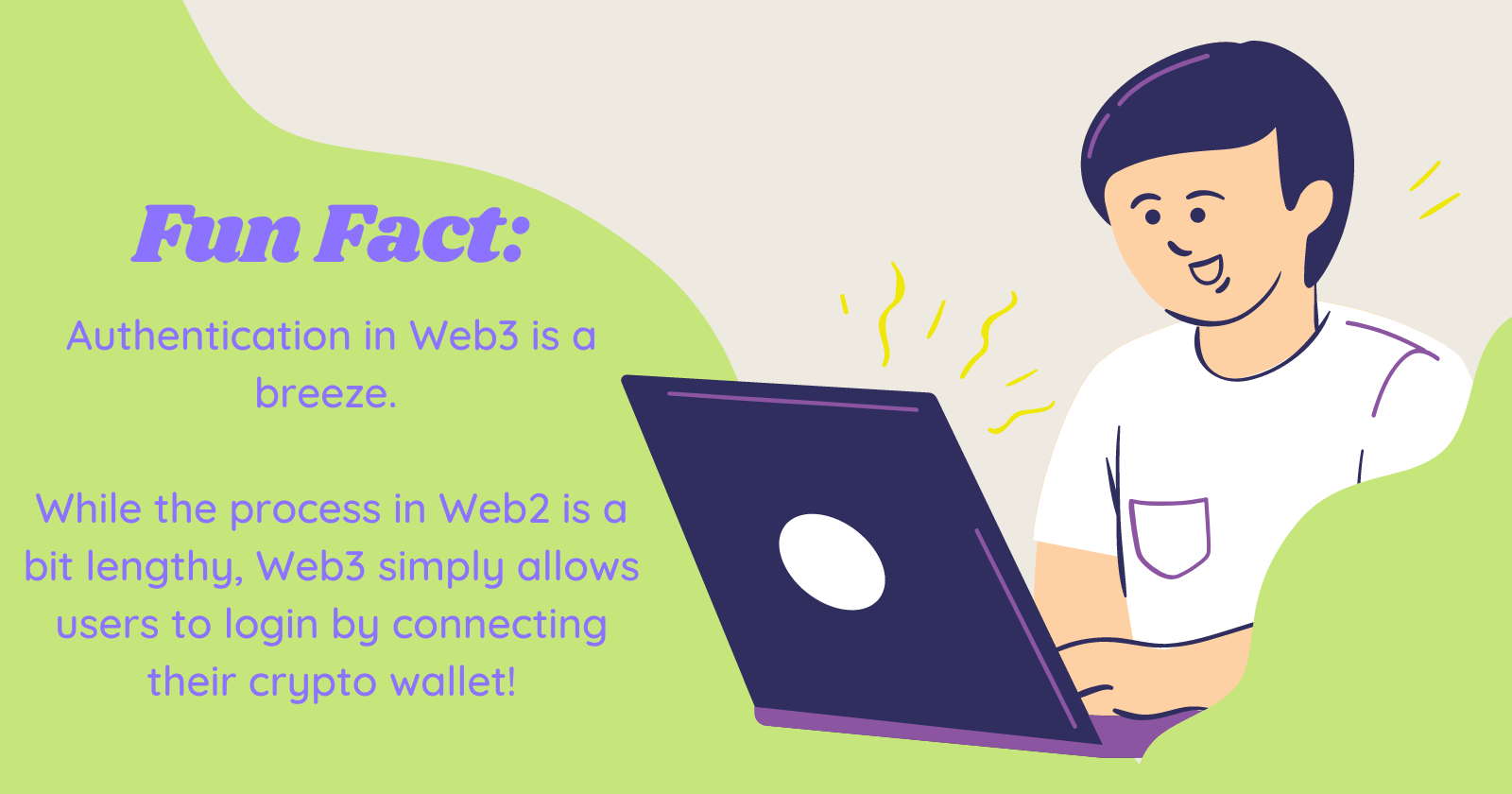 Dato curioso: la autenticación en Web3 es muy sencilla. Si bien el proceso en Web2 es un poco largo, ¡Web3 simplemente permite que los usuarios inicien sesión conectando su crypto wallet!